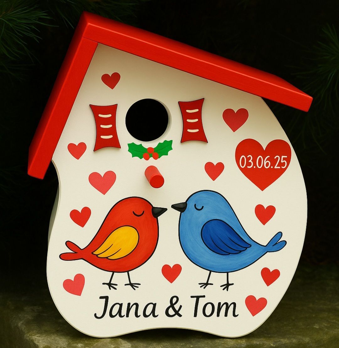 Unsere Nistkästen:Jedes unserer Vogelhäuschen entsteht in liebevoller Handarbeit. Es ist immer ein ganz besonderes Einzelstück und eignet sich deshalb auch als einzigartige und unvergessliche Geschenkidee von Herzen.Ob schlicht, verspielt, mit Namenszug oder Motiv – vieles ist möglich.